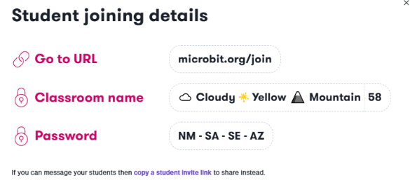 Then direct them to join your micro:bit classroom by displaying your joining information on the screen or by sharing this with them in another way, if needed. You can use the button below or click Invite on the micro:bit classroom teacher screen.
