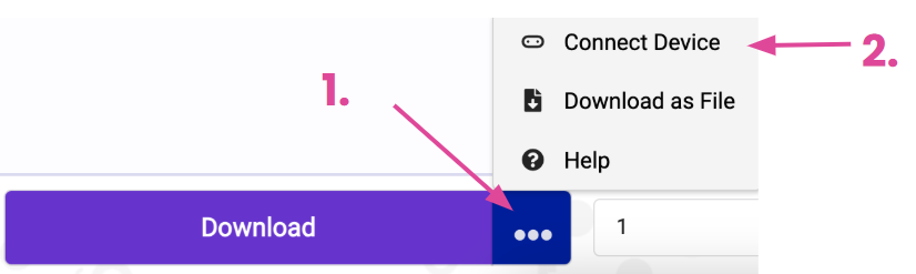 Once they have joined the class, they need to connect their micro:bit to their device browser by clicking the 3 dots next to the download button in the MakeCode editor, then select Connect Device and following the on-screen instructions.