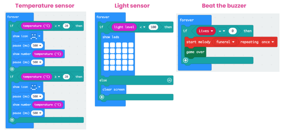 Here are some examples of where students may have used conditions in our other micro:bit projects: