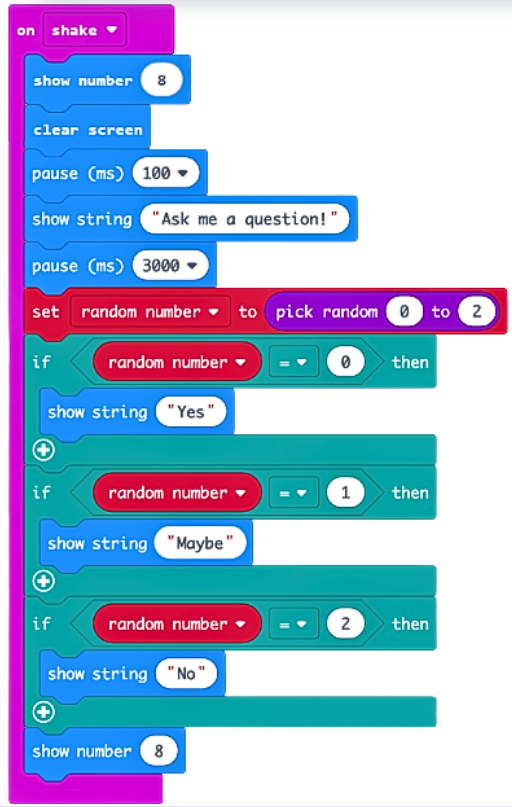 We’re going to have a go at programming our micro:bit to behave just like the Magic 8 Ball toy and give us varying responses when we shake it and ask a question.