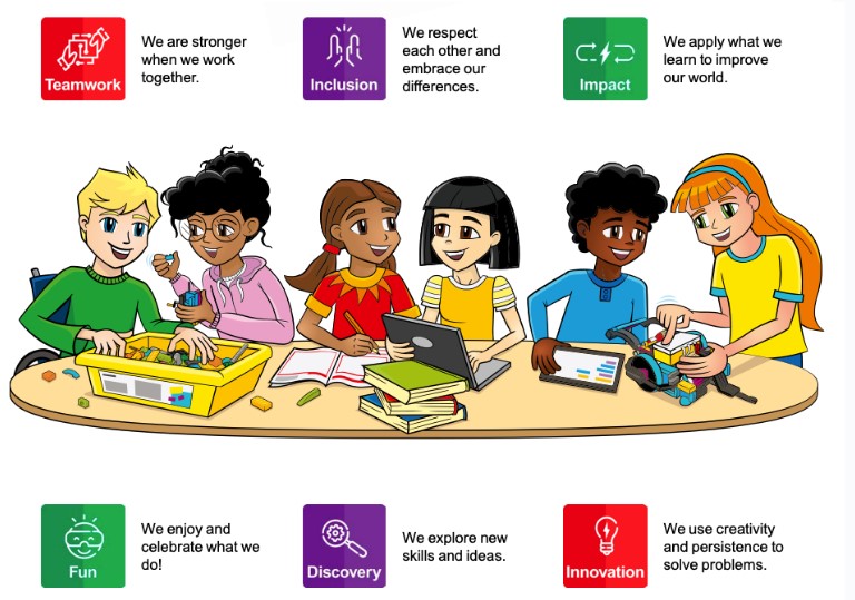 Teams will be judged on how they work together and how well they embody the core values of FIRST® LEGO® League. This will be part of the judging session conversations and also judged in part at the Robot Game tables where their Gracious Professionalism will be assessed as they compete.