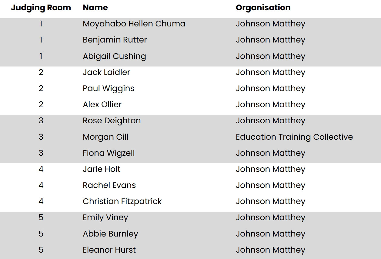 • In the judging session, your job is to give all teams a fair and positive experience and support them to make sure they tell you everything they can about what they’ve been working on. It will be natural for them to be nervous. Many won’t have had to present to a panel of adults before, so please give them a big smile and put them at ease as they enter. We are trying to support them to give their best performance.