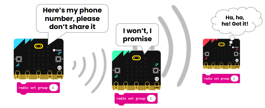 The key to sending radio messages with your micro:bit is making sure you share the same radio group. A group is like a radio channel.