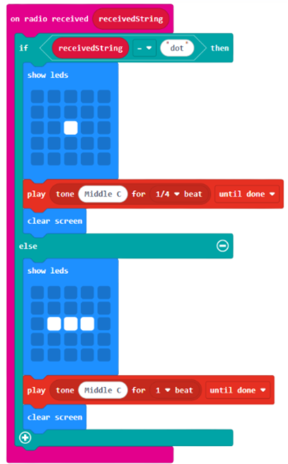 But we also need some additional code to allow the micro:bits to receive and display the message that was sent.